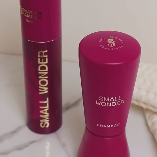 Pure luxury without more plastic. Our beautiful Wonder Bottle is designed to be refilled again and again, so you can have more shine, body and fragrance, and the planet can have less plastic and waste. Our gorgeous and sleek Refills easily pour our Signature Shampoo into your Wonder Bottle, again and again.Our Signature Shampoo leaves your hair feeling soft, smooth and manageable, and is always color safe, free of sulfates, free of parabens and cruelty-free.2.4 oz | 50-80 washes (from just $0.38/wash) | Just add water